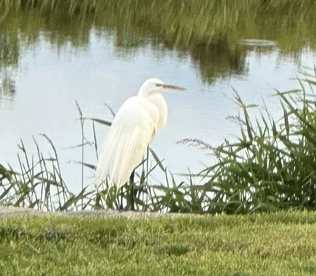 Is a local Kingfisher who likes to stop by along with many bird friends to fish in our pond.
